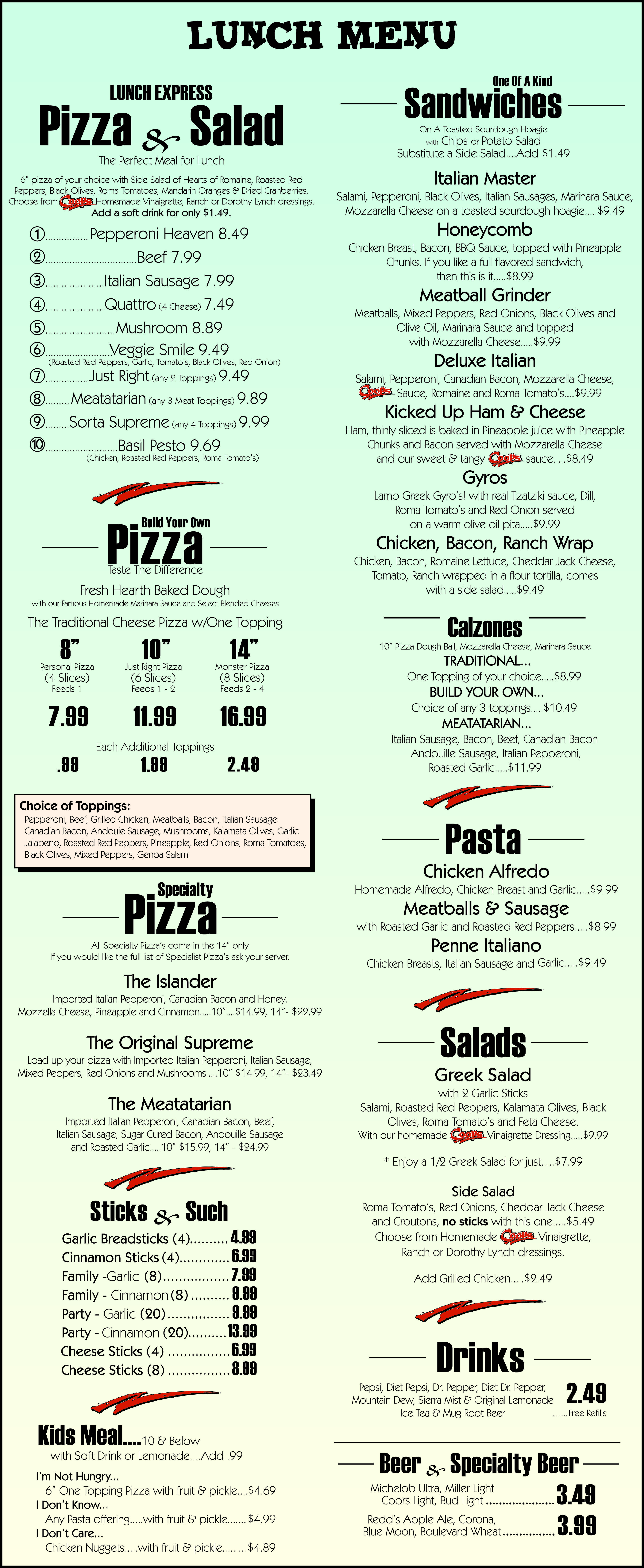 All homemade dough, sauces, and dressings combined with the best ingredients separates us from the competition.